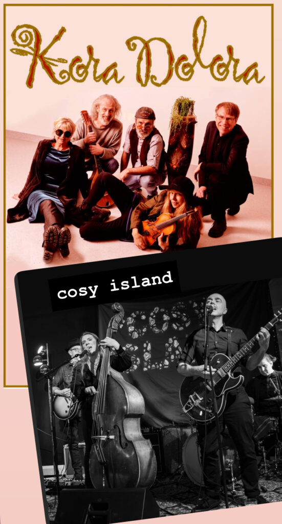 Bandet bildades 2024 och medlemmarna har spelat allt från salsa till bebop till grunge, nu är det organisk rock som gäller. Med stämsång, kontrabas och en längtan ut till djupare vatten. Cosy Island släppte i fjol de första singlarna, hade release i Berlin och har sedan dess spelat på olika mindre scener. Bland annat på Vintervikens Trädgårdskafés scenpremiär 2025 – i hagel!